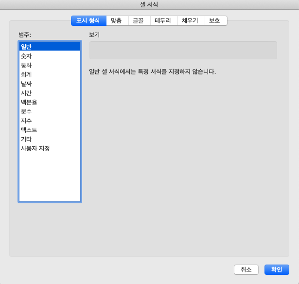 2. 셀 서식 대화상자에서 셀 서식 지정