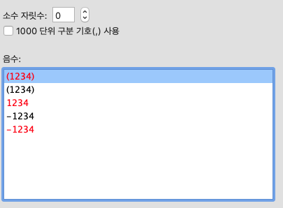 [숫자] 셀 서식은 숫자와 관련된 셀서식입니다. 일반과 다르게 숫자를 입력했을 때 음수일 때 -기호를 바오게 할지 붉은색으로 표시하게 할지 등을 선택할 수 있습니다. 숫자에 소수점이 있을 경우 소수점을 몇 개까지 표시하고, 반올림할지도 선택 가능합니다.