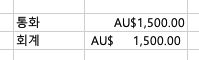 [통화] 통화 셀서식은 숫자 값 앞에 각국의 통화 기호를 표시해 주는데요. 1000이라는 숫자 값이 들어가 있는 셀의 서식을 통화로 바꿔주고, 화폐를 호주달러로 선택한다면 셀의 값은 AU$ 1,000으로 표시됩니다. 여러 나라의 화폐 단위가 들어간 표를 만들 때 유용합니다.