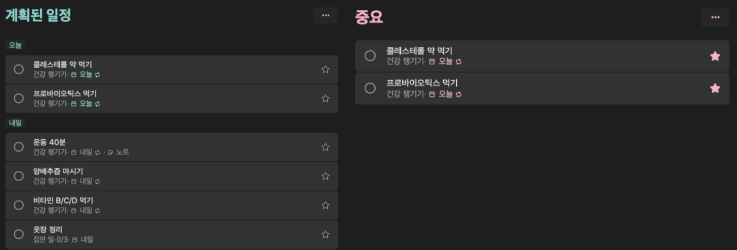 마감이 정해져 있는 일정은 [계획된 일정] 메뉴에서, 별 표시해둔 일정은 [중요] 메뉴에서 쉽게 확인 가능합니다.
