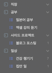 마이크로소프트 To Do의 좋은 기능 중 하나는 그룹과 목록을 만들 수 있다는 것인데요. 그룹과 목록을 나눠서 할 일을 관리하니 한눈에 보기 좋습니다. 만약 홍보팀에서 언론 홍보와 사내 커뮤니케이션, SNS 홍보를 모두 담당하는 어떤 직장인을 예로 든다면, 아래와 같이 크게 직장이라는 그룹을 만들고, 그 안에 크게 자신이 담당하는 업무의 목록을 만들면 업무관리가 더 편하겠죠?