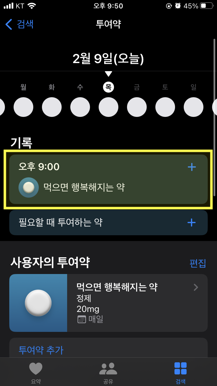 아이폰 건강 앱에 약 복용 기록하는 방법